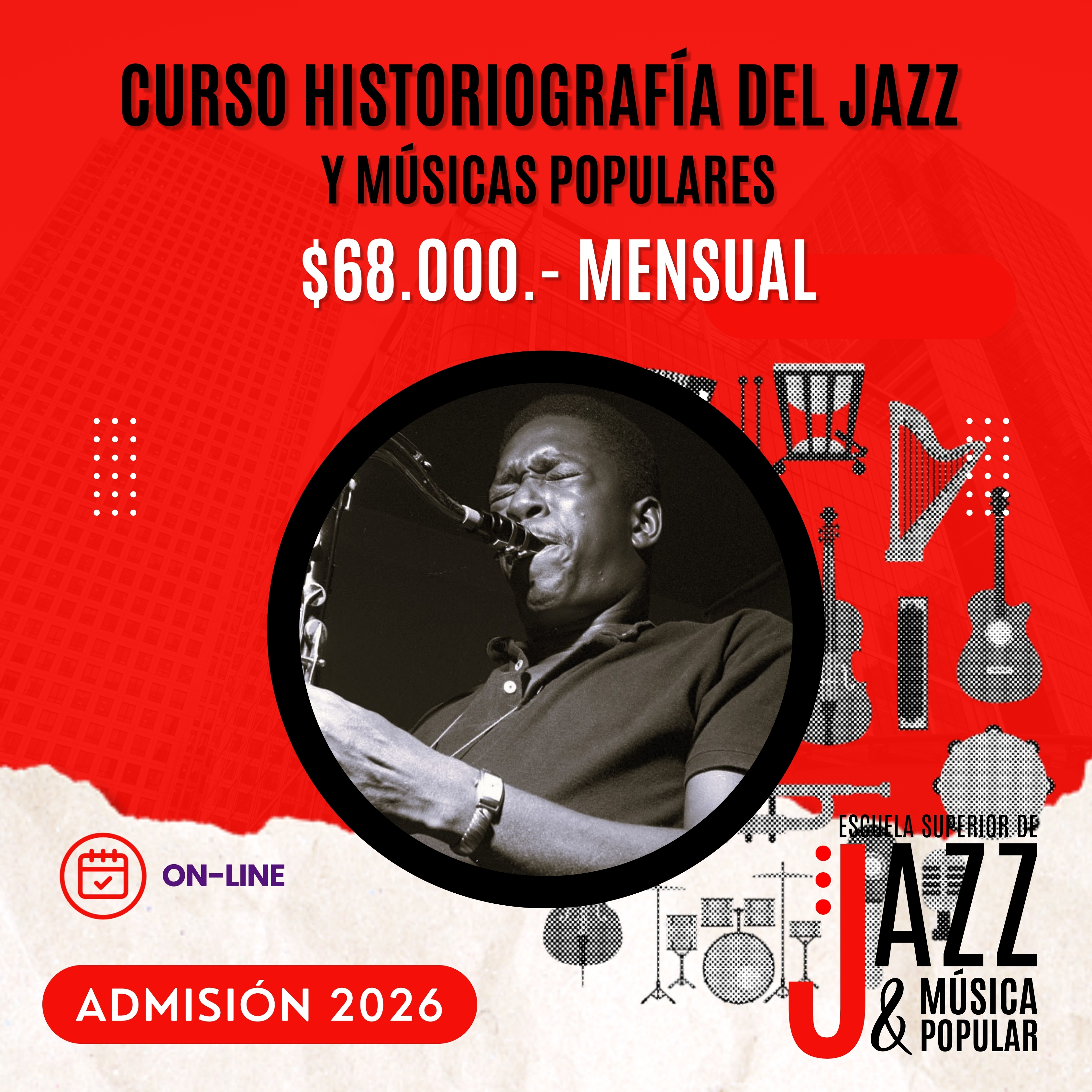 SISTEMA DE CLASES: ON-LINE DIRIGIDO A: PÚBLICO GENERAL CON O SIN CONOCIMIENTOS PREVIOS. DESCRIPCIÓN DE LA ASIGNATURA: Curso centrado en el … Continúa leyendo HISTORIOGRAFÍA DEL JAZZ Y MÚSICAS POPULARES